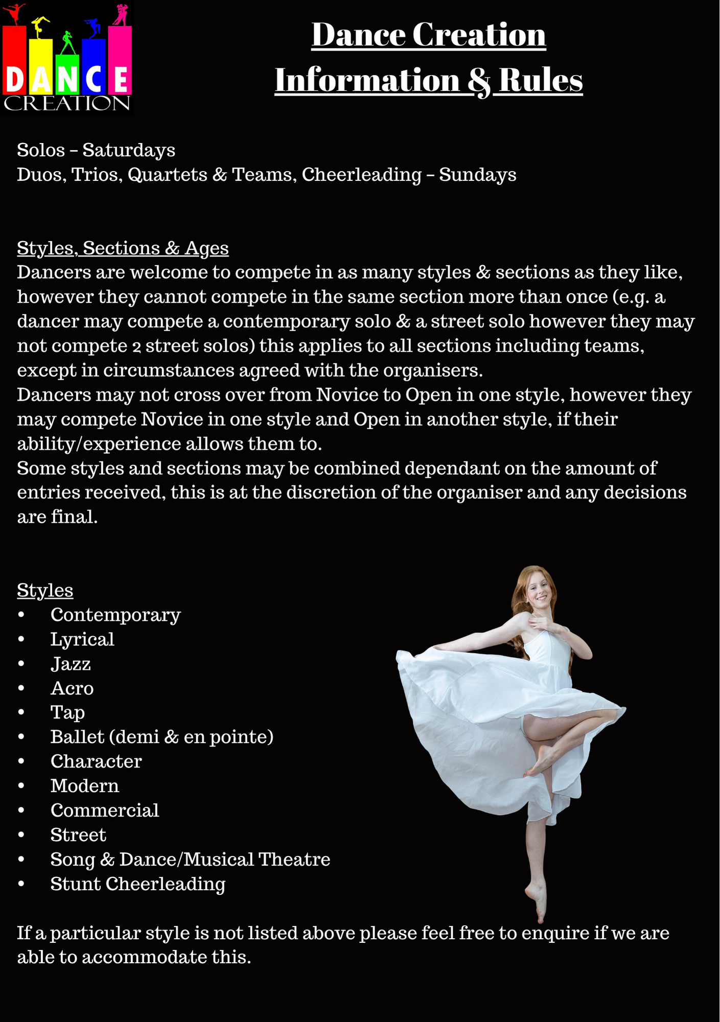 We are a super supportive & helpful bunch and happy to accommodate anything we can, so if you can’t see a section you would like to compete, our age ranges are different to your teams or anything else we might be able to help you with, please dont hesitate to ask!